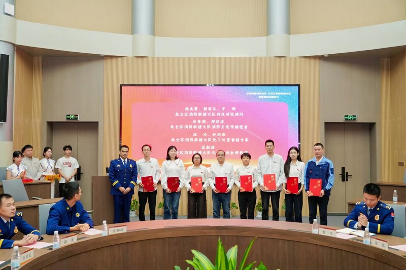 仪式上,双方共建的“化工灭火救援研训中心”与“大学生思政育人实践基地”正式揭牌。这两个平台的建立,将为我校学生提供宝贵的实践教学资源,同时也为消防救援队伍的专业化训练注入科技与人才动能。